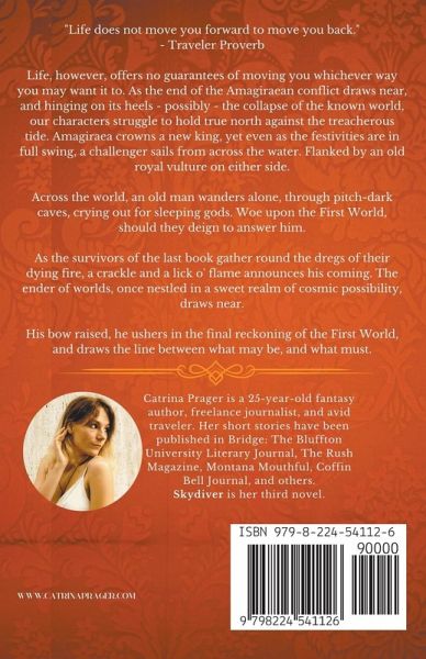 "Life does not move you forward to move you back." - Traveler Proverb Life, however, offers no guarantees of moving you whichever way you may want it to. As the end of the Amagiraean conflict draws near, and hinging on its heels - possibly - the collapse of the known world, our characters struggle to hold true north against the treacherous tide. Amagiraea crowns a new king, yet even as the festivities are in full swing, a challenger sails from across the water. Flanked by an old royal vulture on either side. Across the world, an old man wanders alone, through pitch-dark caves, crying out for sleeping gods. Woe upon the First World, should they deign to answer him. Skydiver, the third and final offering in the Warhound Series, is a book of grief, but also of new beginnings. As the survivors of the last book gather round the dregs of their dying fire, a crackle and a lick o' flame announces his coming. The ender of worlds, once nestled in a sweet realm of cosmic possibility, draws near. His bow raised, he ushers in the final reckoning of the First World, and draws the line between what may be, and what must.