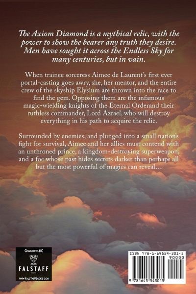 The Axiom Diamond is a mythical relic, with the power to show the bearer any truth they desire. Men have sought it across the Endless Sky for many centuries, but in vain. When trainee sorceress Aimee de Laurent's first ever portal-casting goes awry, she, her mentor, and the entire crew of the skyship Elysium are thrown into the race to find the gem. Opposing them are the infamous magic-wielding knights of the Eternal Orderand their ruthless commander, Lord Azrael, who will destroy everything in his path to acquire the relic. Surrounded by enemies, and plunged into a small nation's fight for survival, Aimee and her allies must contend with an unthroned prince, a kingdom-destroying superweapon, and a foe whose past hides secrets darker than perhaps all but the most powerful of magics can reveal...