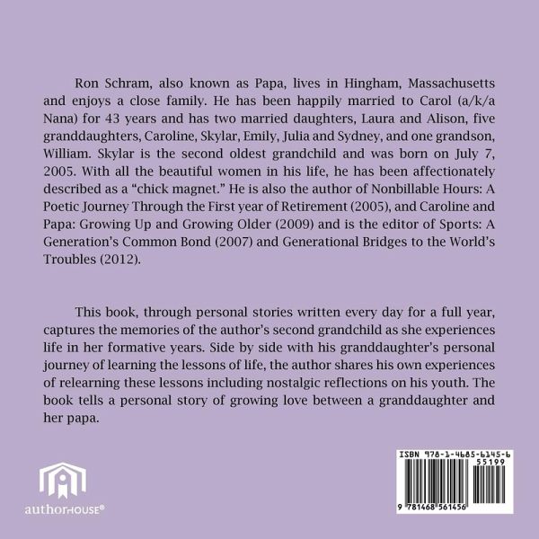 This book, through personal stories written every day for a full year, captures the memories of the author's second grandchild as she experiences life in her formative years. Side by side with his granddaughter's personal journey of learning the lessons of life, the author shares his own experiences of relearning these lessons including nostalgic reflections on his youth. The book tells a personal story of growing love between a granddaughter and her papa.