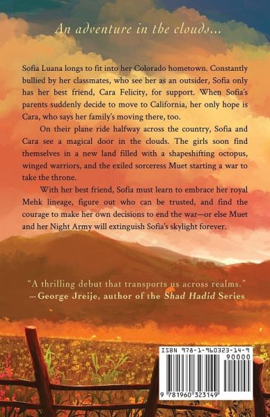 For fans of Hayao Miyazaki, this middle-grade novel welcomes you to an immersive Thai fantasy where twelve-year-old best friends Sofia and Cara explore the boundaries of family, friendship, and learning to forge your own path. Sofia Luana longs to fit into her Colorado hometown. Constantly bullied by her classmates, who see her as an outsider, Sofia only has her best friend, Cara Felicity, for support. When Sofia's parents suddenly decide to move to California, her only hope is Cara, who says her family's moving there, too. On their plane ride halfway across the country, Sofia and Cara see a magical door in the clouds. The girls soon find themselves in a new land filled with a shapeshifting octopus, winged warriors, and the exiled sorceress Muet starting a war to take the throne. With her best friend, Sofia must learn to embrace her royal Mehk lineage, figure out who can be trusted, and find the courage to make her own decisions to end the war--or else Muet and her Night Army will extinguish Sofia's skylight forever.