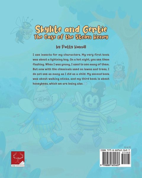 I use insects for my characters. My very first book was about a lightning bug. On a hot night, you see them flashing. When I was young, I used to see many of them. But now with the chemicals used on lawns and trees, I do not see as many as I did as a child. My second book was about walking sticks, and my third book is about honeybees, which we are losing also.