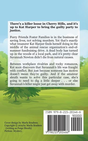 There's a killer loose in Cherry Hills, and it's up to Kat Harper to bring the guilty party to justice. Furry Friends Foster Families is in the business of saving lives, not solving murders. Yet that's exactly what treasurer Kat Harper finds herself doing in the middle of the animal rescue organization's end-of-summer fundraising drive. A dead body has turned up in the woods of a local park, and it's pretty clear Savannah Newton didn't die from natural causes. Between workplace rivalries and rocky romances, Kat soon discovers that Savannah's life was fraught with conflict. But just because someone has motive doesn't mean they're guilty. And if the amateur sleuth wants to solve this particular case, she's going to need to dig a little deeper . . . or else Savannah's killer might just get away with murder. All of the Cozy Cat Caper Mystery books can be enjoyed as standalones but will be better appreciated as part of the series. The books are light, fun cozy mysteries featuring an animal-loving female amateur sleuth, lovable and not-so-lovable quirky characters, and a page-turning mystery that needs solving. None of the books include cliffhangers, bad language, or graphic scenes.