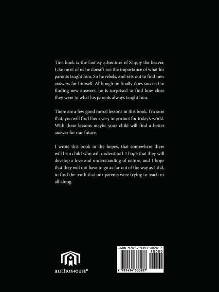This book is the fantasy adventure of Slappy the beaver. Like most of us he doesn't see the importance of what his parents taught him. So he rebels, and sets out to find new answers for himself. Although he finally does succeed in finding new answers, he is surprised to find how close they were to what his parents always taught him. There are a few good moral lessons in this book. I'm sure that, you will find them very important for today's world. With these lessons maybe your child will find a better answer for our future. I wrote this book in the hopes, that somewhere there will be a child who will understand. I hope that they will develop a love and understanding of nature, and I hope that they will not have to go as far out of the way as I did, to find the truth that our parents were trying to teach us all along. Nicholas J. Boyle