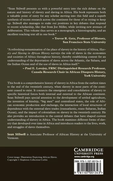 This book is a comprehensive history of slavery in Africa from the earliest times to the end of the twentieth century, when slavery in most parts of the continent ceased to exist. It connects the emergence and consolidation of slavery to specific historical forces both internal and external to the African continent. Sean Stilwell pays special attention to the development of settled agriculture, the invention of kinship, 'big men' and centralized states, the role of African economic production and exchange, the interaction of local structures of dependence with the external slave trades (transatlantic, trans-Saharan, Indian Ocean), and the impact of colonialism on slavery in the twentieth century. He also provides an introduction to the central debates that have shaped current understanding of slavery in Africa. The book examines different forms of slavery that developed over time in Africa and introduces readers to the lives, work, and struggles of slaves themselves.