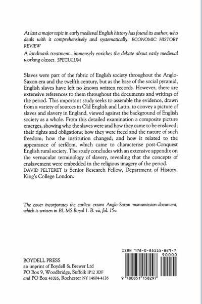 At last a major topic in early medieval English history has found its author, who deals with it comprehensively and systematically. ECONOMIC HISTORY REVIEW A landmark teatment...immensely enriches the debate about early medieval working classes. SPECULUM Slaves were part of the fabric of English society throughout the Anglo-Saxon era and the twelfth century, but as the base of the social pyramid, they have left no known written records; there are, however, extensive references to them throughout the documents and writings of the period. This important study seeks to assemble the evidence, drawn from a variety of sources in Old English and Latin, to convey a picture of slaves and slavery in England, viewed against the background of English society as a whole. An extensive appendix on the vernacular terminology of slavery reveals the concepts of enslavement to be embedded in the religious imagery of the period. DAVID PELTERET is Senior Research Fellow, Department of History, King's College London.