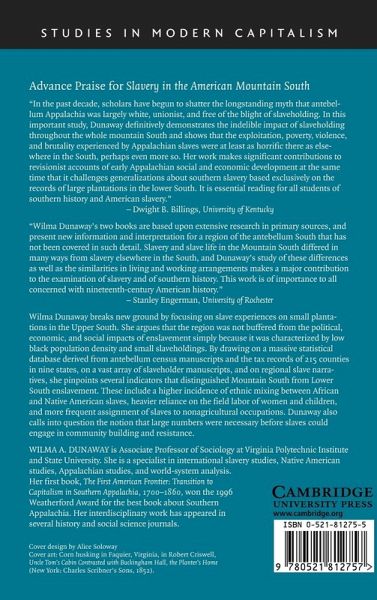 List of maps; Introduction; 1. Slavery's grip on the Mountain South; 2. Labor management on mountain plantations; 3. Slaves in commerce and travel capitalism; 4. Slaves in industry and manufacturing; 5. Slavery and poor whites in the Mountain South; 6. Repression and antisystemic resistance on mountain plantations; 7. Cultural resistance and community building on mountain plantations; Conclusion; Notes; Bibliography; Index.