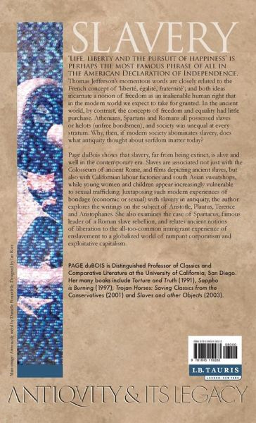 'Life, liberty and the pursuit of happiness' is perhaps the most famous phrase of all in the American Declaration of Independence. Thomas Jefferson's momentous words are closely related to the French concept of 'liberte, egalite, fraternite'; and both ideas incarnate a notion of freedom as inalienable human right that in the modern world we expect to take for granted. In the ancient world, by contrast, the concepts of freedom and equality had little purchase. Athenians, Spartans and Romans all possessed slaves or helots (unfree bondsmen), and society was unequal at every stratum. Why, then, if modern society abominates slavery, does what antiquity thought about serfdom matter today? Page duBois shows that slavery, far from being extinct, is alive and well in the contemporary era. Slaves are associated not just with the Colosseum of ancient Rome but also with Californian labour factories and south Asian sweatshops, while young women and children appear increasingly vulnerable to sexual trafficking. Applying such modern experiences of bondage (economic or sexual) to slavery in antiquity, the author explores the writings on the subject of Aristotle, Plautus, Terence and Aristophanes. She also examines the case of Spartacus, famous leader of a Roman slave rebellion, and relates ancient notions of liberation to the all-too-common immigrant experience of enslavement to a globalized world of rampant corporatism and exploitative capitalism.