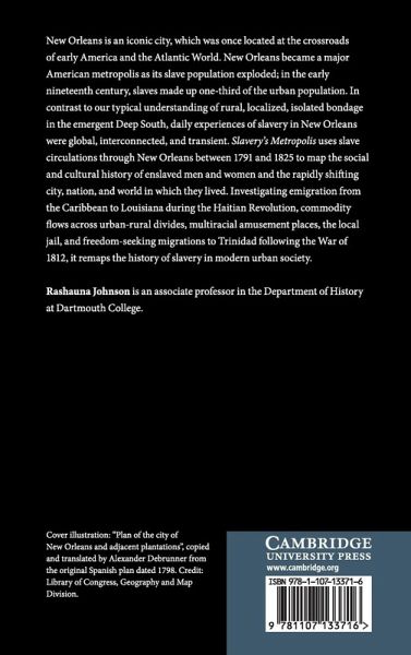 New Orleans is an iconic city, which was once located at the crossroads of early America and the Atlantic World. New Orleans became a major American metropolis as its slave population exploded; in the early nineteenth century, slaves made up one third of the urban population. In contrast to our typical understanding of rural, localized, isolated bondage in the emergent Deep South, daily experiences of slavery in New Orleans were global, interconnected, and transient. Slavery's Metropolis uses slave circulations through New Orleans between 1791 and 1825 to map the social and cultural history of enslaved men and women and the rapidly shifting city, nation, and world in which they lived. Investigating emigration from the Caribbean to Louisiana during the Haitian Revolution, commodity flows across urban-rural divides, multiracial amusement places, the local jail, and freedom-seeking migrations to Trinidad following the War of 1812, it remaps the history of slavery in modern urban society.