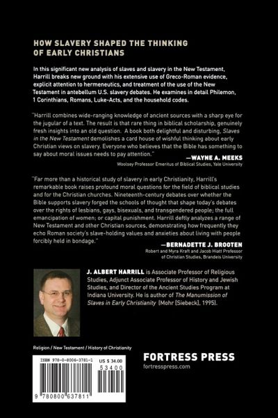 In this exciting new analysis of slaves and slavery in the New Testament, Harrill breaks new ground with his extensive use of Greco-Roman evidence, discussion of hermeneutics, and treatment of the use of the New Testament in antebellum U.S. slavery debates. He examines in detail Philemon, 1 Corinthians, Romans, Luke-Acts, and the household codes.