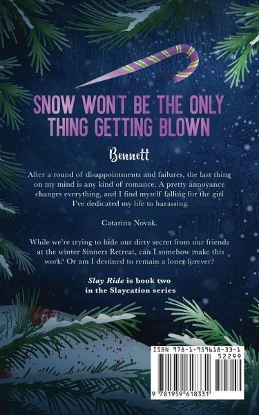 Snow won't be the only thing getting blown Bennett After a round of disappointments and failures, the last thing on my mind is any kind of romance. A pretty annoyance changes everything, and I find myself falling for the girl I've dedicated my life to harassing. Catarina Novak. While we're trying to hide our dirty secret from our friends at the winter Sinners Retreat, can I somehow make this work? Or am I destined to remain a loner forever? TROPES Grumpy x Sunshine Forced proximity Touch her and ¿¿ Enemies-to-lovers He falls first (but she hits harder) Razor-sharp banter Lost in the woods Serial unaliver shenanigans Welcome to the winter retreat, Sinners! Slay Ride is the second book in Lauren Biel's Slaycation series. Each book follows a different couple as they navigate the hilarity of love and murder. These dark romantic comedies are packed with serial killers, forced proximity, and banter that cuts deep. It's a dangerously good time! Although this dark rom-com is "DIET" Lauren Biel it still has adult themes. Full list of content warnings on my website. Please read responsibly!