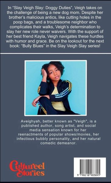 In Slay Veigh Slay: Doggy Duties, Veigh takes on the challenge of being a new dog mom. Despite her brother's mischievous antics, like cutting holes in the poop bags, and a troublesome neighbor who complicates their walks, Veigh's determination to slay her new role never wavers. With the support of her best friend, Kayla, Veigh navigates these hurdles with humor and grace. "Slay Veigh Slay" is a captivating children's chapter book series featuring 10-year-old Veigh, a girl determined to "slay" in everything she does. From being a good friend, excelling in homework, singing, and standing up to bullies with kindness to mastering new skills, Veigh's adventures are filled with valuable lessons, humor, and inspiration. Confident yet humble, Veigh relies on her strong relationship with God to maintain a positive and resilient mindset. Though fears and doubts arise, she slays them with faith and determination. Through her eyes, young readers will learn the importance of confidence, kindness, perseverance, and the power of faith in overcoming life's challenges. Join Veigh as she slays, leaving a trail of laughter and amazement.