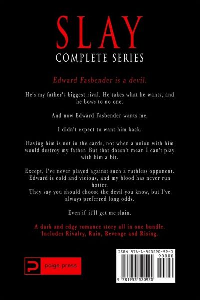 Edward Fasbender is a devil. He's my father's business rival, a powerful, vicious man who takes what he wants and bows to no one. I only took the meeting because I was curious. I thought he was going to offer me a job. But that's not what he's after at all. His proposal is much more intriguing, and I see an opportunity. An opportunity to turn the tables and bring down the devil. I've gotten in trouble playing these games before. I know when the risk is too great, when the stakes are too high. I know how to be cold and strong-willed and destructive. I know how to withstand dominant men with arrogant charm and rugged features. Yet I can't resist taking on Edward. And I can't resist the pull he has on me. Soon I'm not so sure which side of the battle I'm standing on--if I'm the warrior meant to slay, Or the one who will be slain. Includes the complete series: Rivalry, Ruin, Revenge, Rising