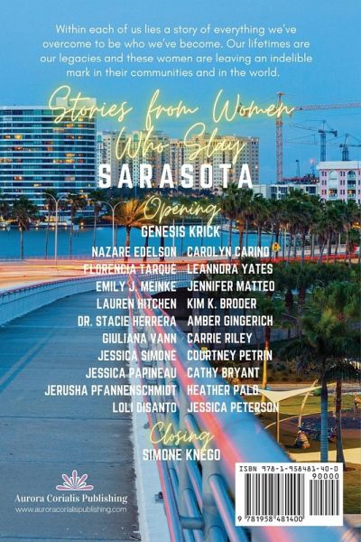 Within each of us lies a story of everything we've overcome to be who we've become. Our lifetimes are our legacies, and these women are leaving an indelible mark in their communities and in the world. With stories collected by Leigh M. Clark, these are women who slay Sarasota. Part of the Slay the USA Series. Genesis Krick Kim Broder Cathy Bryant Carolyn Carino Loli DiSanto Nazare Edelson Amber Gingerich Dr. Stacie Herrera Lauren Hitchen Jennifer Matteo Emily J. Meinke Heather Palo Jessica Papineau Jessica Peterson Courtney Petrin Jerusha Pfannenschmidt Carrie Riley Jessica Simone Florencia Tarque Giuliana Vann Leanndra Yates Simone Knego