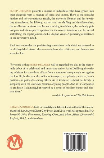 Sleep Decades presents a mosaic of individuals who have grown into their identities with a mixture of verve and unease. There is the nomadic mother and her surreptitious rituals, the maverick librarian and his unwitting mausoleum, the lifelong activist and her shifting anti-intellectualism, the small-time professor and his encroaching fraudulence, the untimely philosopher and his misplaced appetencies, the wanton translator and her sexual scaffolding, the mystic janitor and his utopian vision. A gathering of existence in the adversative mood.Each story unsettles the proliferating convictions with which we demand to be distinguished from others¿convictions that obfuscate and harden our sense for life.