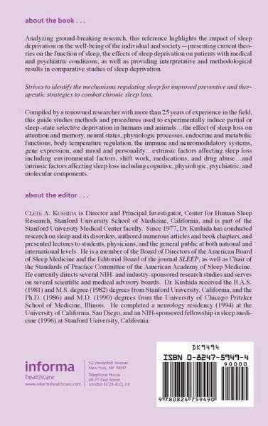 Analyzing ground-breaking research, this reference highlights the impact of sleep deprivation on the well-being of the individual and society-presenting current theories on the function of sleep, the effects of sleep deprivation on patients with medical and psychiatric conditions, as well as providing interpretative and methodological results in comparative studies of sleep deprivation.