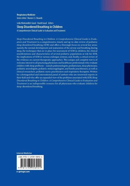 Sleep Disordered Breathing in Children: A Comprehensive Clinical Guide to Evaluation and Treatment is a comprehensive, timely and up-to-date review of pediatric sleep disordered breathing (SDB) and offers a thorough focus on several key areas: namely, the normal development and maturation of the airway and breathing during sleep, the techniques that are in place for assessment of SDB in children, the clinical manifestations and characteristics of several pediatric populations at risk for SDB, the implications of SDB in various end-organ systems, and, finally, a critical review of the evidence on current therapeutic approaches. This unique and complete text is of welcome interest to all practicing physicians and healthcare professionals who evaluate children with sleep problems -- namely pulmonologists, pediatricians, sleep physicians, pediatric neurologists, pediatric otolaryngologists, and family practitioners, as well as clinical researchers, pediatric nurse practitionersand respiratory therapists. Written by a distinguished and international panel of authors who are renowned experts in their field and who offer an expanded view of the problems associated with SDB, Sleep Disordered Breathing in Children: A Comprehensive Clinical Guide to Evaluation and Treatment is an indispensible resource for all physicians who evaluate children for sleep-disordered breathing.