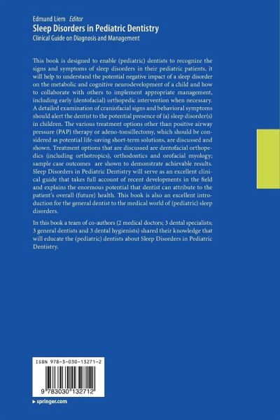 In this book a team of co-authors (2 medical doctors; 3 dental specialists; 3 general dentists and 3 dental hygienists) shared their knowledge that will educate the (pediatric) dentists about Sleep Disorders in Pediatric Dentistry.