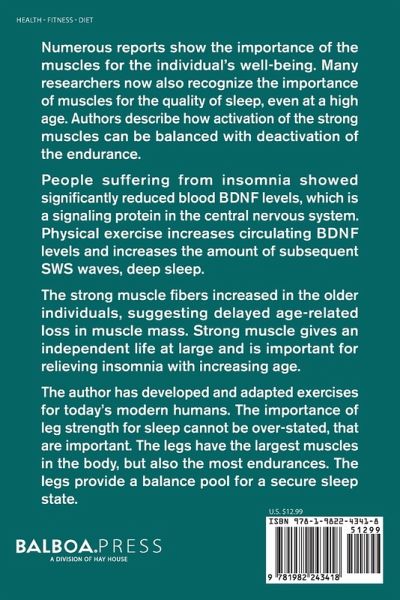 Numerous reports show the importance of the muscles for the individual's well-being. Many researchers now also recognize the importance of muscles for the quality of sleep, even at a high age. Authors describe how activation of the strong muscles can be balanced with deactivation of the endurance. People suffering from insomnia showed significantly reduced blood BDNF levels, which is a signaling protein in the central nervous system. Physical exercise increases circulating BDNF levels and increases the amount of subsequent SWS waves, deep sleep. The strong muscle fibers increased in the older individuals, suggesting delayed age-related loss in muscle mass. Strong muscle gives an independent life at large and is important for relieving insomnia with increasing age. The author has developed and adapted exercises for today's modern humans. The importance of leg strength for sleep cannot be over-stated, that are important. The legs have the largest muscles in the body, but also the most endurances. The legs provide a balance pool for a secure sleep state.