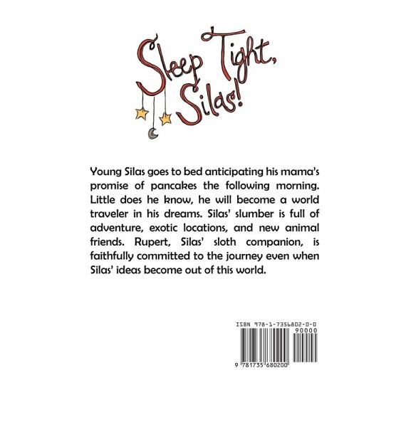 Young Silas goes to bed anticipating his mama's promise of pancakes the following morning. Little does he know, he will become a world traveler in his dreams. Silas' slumber is full of adventure, exotic locations, and new animal friends. Rupert, Silas' sloth companion, is faithfully committed to the journey even when Silas' ideas become out of this world.