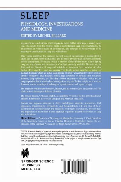 1. Normal sleep.- 2. Normal sleep in children.- 3. Neurobiology of the sleep-wake cycle.- 4. The major physiological fonctions during sleep.- 5. Models of human sleep regulation.- 6. Melatonin and sleep-wake rhythm.- 7. Molecular genetics, circadian rhythms and sleep.- 8. Mental activities during sleep.- 9. Polysomnography.- 10. Ambulatory Systems.- 11. Guidelines for visual sleep analysis.- 12. Automatic sleep analysis.- 13. Investigation of vigilance and sleepiness.- 14. Insomnia: Introduction.- 15. A decision tree approach to the differential diagnosis of insomnia.- 16. Transient and short term insomnia.- 17. Primary insomnia.- 18. Insomnia associated with medical disorders.- 19. Insomnia associated with psychiatric disorders.- 20. Insomnia linked to medications.- 21. Benzodiazepines and new non-benzodiazepine agents.- 22. Other medications used for insomnia.- 23. Insomnia in children: Clinical aspects and treatment.- 24. Sleep and circadian rhythms in normal aging.- 25. Hypersomnias: Introduction.- 26. A decision tree approach to the differential diagnosis of hypersomnia.- 27. Insufficient sleep syndrome.- 28. Medication and alcohol dependent sleepiness.- 29. Obstructive sleep apnoea-hypopnea syndrome and upper airway resistance syndrome.- 30. Surgical and prosthetic treatment for sleep apnoea syndrome and upper airway resistance syndrome.- 31. Narcolepsy.- 32. Idiopathic hypersomnia.- 33. Recurrent hypersomnias.- 34. Other hypersomnias.- 35. Hypersomnia in children.- 36. Circadian rhythm sleep disorders: Introduction.- 37. A decision tree approach to the differential diagnosis of a circadian rhythm sleep disorders.- 38. Shift work sleep disorder.- 39. Time zone change (jet lag) syndrome.- 40. Circadian rhythm sleep disorders related to an abnormal escape of the sleep-wake cycle.- 41. Parasomnias.- 42. Enuresis.- 43. Snoring.- 44. Nocturnal hypoxemia in chronic obstructive pulmonary disease.- 45. Central alveolar hypoventilation syndrome.- 46. Sleep breathing abnormalities in neuromuscular diseases.- 47. Cardiocirculatory disorders and sleep.- 48. Restless legs syndrome in wakefulness and periodic leg movements in sleep.- 49. Abnormal postures and movements during sleep.- 50. Night epilepsies.- 51. Sleep-related headaches.- 52. Fatal familial insomnia.- 53. Sleep and the gastrointestinal tract.- 54. Sleep and sudden infant death syndrome.- 55. Sleep related painful erections.- 56. Mood disorders and sleep.- 57. Sleep and lesions in the central nervous system.- 58. Sleep as a tool for investigating epilepsies.- 59. Dysautonomias.- 60. Fibromyalgia and chronic fatigue syndrome: the role of sleep disturbances.- Questionnaires and scales.- 1. General questionnaire on sleep.- Morning Questionnaire.- 2. Questionnaires used in the evaluation of insomnia.- Sleep Impairment Index.- Beliefs And Attitudes About Sleep Scale.- The Pittsburgh Sleep Quality Index.- The Leeds Sleep Evaluation Questionnaire.- The Beck Depression Inventory.- 3. Scales used in the evaluation of hypersomnia.- The Stanford Sleepiness Scale.- The Karolinska Sleepiness Scale.- The Epworth Sleepiness Scale.- 4. Questionnaire used in the evaluation of circadian rhythm sleep disorder.- The Home and Östberg Questionnaire.