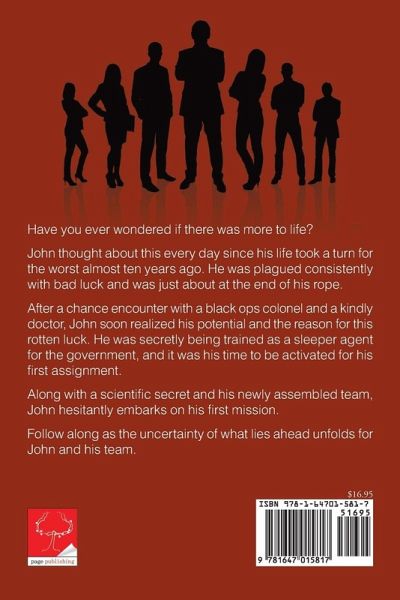 Have you ever wondered if there was more to life? John thought about this every day since his life took a turn for the worst almost ten years ago. He was plagued consistently with bad luck and was just about at the end of his rope. After a chance encounter with a black ops colonel and a kindly doctor, John soon realized his potential and the reason for this rotten luck. He was secretly being trained as a sleeper agent for the government, and it was his time to be activated for his first assignment. Along with a scientific secret and his newly assembled team, John hesitantly embarks on his first mission. Follow along as the uncertainty of what lies ahead unfolds for John and his team.