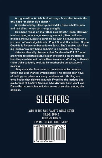 SLEEPERS, Book 1 THE BLUE PLANETS WORLD SERIES He comes from an alien world. But he’s the best hope for Earth. In this coming of age science fiction story, Jake Rose—who is half Earthling and half alien—must discover the truth of what the Risonian aliens have been doing on earth. He joins his human grandparents on Bainbridge Island, but finds alien sleeper cells hiding in Puget Sound. They’re desperate! Their world is dying, and they need a new planet. They can breathe in air or water, so they only want to live in Earth’s oceans. Jake must stop those—on both sides--who would sabotage the Risonian’s only hope for survival. But strangely, he finds that he’s also Earth’s only hope for survival. Read to find out how he survives.