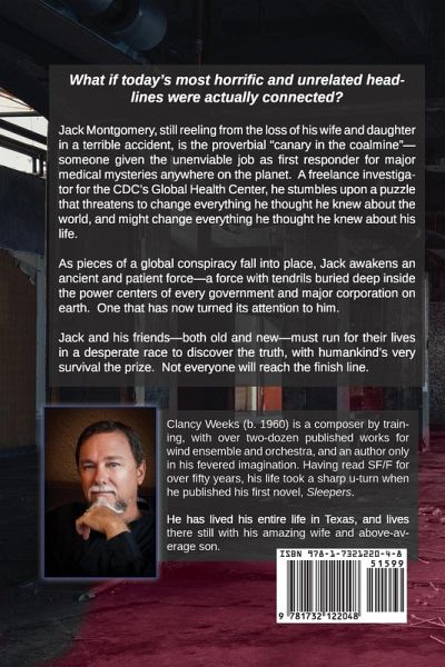 What if the most horrifying headlines were all connected? Jack Montgomery, still reeling from the loss of his wife and daughter in a terrible accident, is the proverbial "canary in the coalmine"-someone given the unenviable job as first responder for major medical mysteries anywhere on the planet. A freelance investigator for the CDC's Global Health Center, he stumbles upon a puzzle that threatens to change everything he thought he knew about the world, and might change everything he thought he knew about his life.As pieces of a global conspiracy fall into place, Jack awakens an ancient and patient force-a force with tendrils buried deep inside the power centers of every government and major corporation on earth. One that has now turned its attention to him.Jack and his friends-both old and new-must run for their lives in a desperate race to discover the truth, with humankind's very survival the prize. Not everyone will reach the finish line The machineries of government grind slowly, and one man with nothing left to lose might have a chance to free the Sleepers.