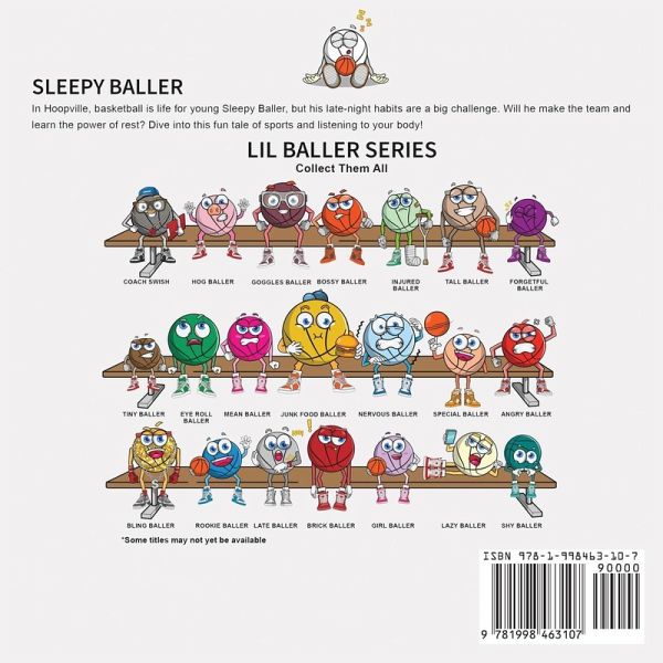 Meet Sleepy Baller-his dream is to play for the school basketball team; there's just one problem. He stays up too late. Every night, it's the same: video games, YouTube, and basketball highlights keep him awake. When tryout day comes, his lack of sleep catches up with him; he can barely keep his eyes open. Thankfully, Coach Swish steps in-his advice might just be what Sleepy needs to turn things around. Follow basketball player Sleepy Baller as he learns the hard way that sleep is as important as practice. If you loved "Sleepy Baller," check out other books in the Baller series as they tackle the challenges and triumphs of the basketball journey. With relatable characters and powerful messages, these books are perfect for kids who love basketball and anyone looking to overcome obstacles and achieve their goals. https://lilballerbooks.com