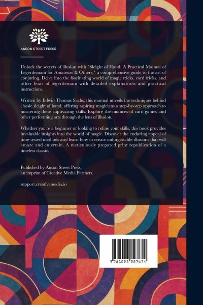 Unlock the secrets of illusion with "Sleight of Hand: A Practical Manual of Legerdemain for Amateurs & Others," a comprehensive guide to the art of conjuring. Delve into the fascinating world of magic tricks, card tricks, and other feats of legerdemain with detailed explanations and practical instructions. Written by Edwin Thomas Sachs, this manual unveils the techniques behind classic sleight of hand, offering aspiring magicians a step-by-step approach to mastering these captivating skills. Explore the nuances of card games and other performing arts through the lens of illusion. Whether you're a beginner or looking to refine your skills, this book provides invaluable insights into the world of magic. Discover the enduring appeal of time-tested methods and learn how to create unforgettable illusions that will amaze and entertain. A meticulously prepared print republication of a timeless classic. This work has been selected by scholars as being culturally important, and is part of the knowledge base of civilization as we know it. This work is in the public domain in the United States of America, and possibly other nations. Within the United States, you may freely copy and distribute this work, as no entity (individual or corporate) has a copyright on the body of the work. Scholars believe, and we concur, that this work is important enough to be preserved, reproduced, and made generally available to the public. We appreciate your support of the preservation process, and thank you for being an important part of keeping this knowledge alive and relevant.