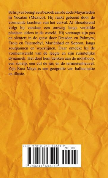 Schrijver brengt een bezoek aan de dode Mayasteden in Yucatán (Mexico). Hij raakt geboeid door de vormende krachten van het verval. Al filosoferend volgt hij vandaar een omweg langs verstilde plaatsen elders in de wereld. Hij vertraagt zijn pas en slentert in de geest door Dresden en Palmyra, Troje en Tsjernobyl, Mariënbad en Sopron, langs zoutpannen en woestijnen. Daar ontdekt hij de vormenwereld van de leegte en zijn ruimtelijke dynamiek. Het doet hem denken aan de molshoop, een schelp, een cul de sac en de termietenheuvel. Zijn Ruta Maya is een geografie van hallucinatie en illusie.
