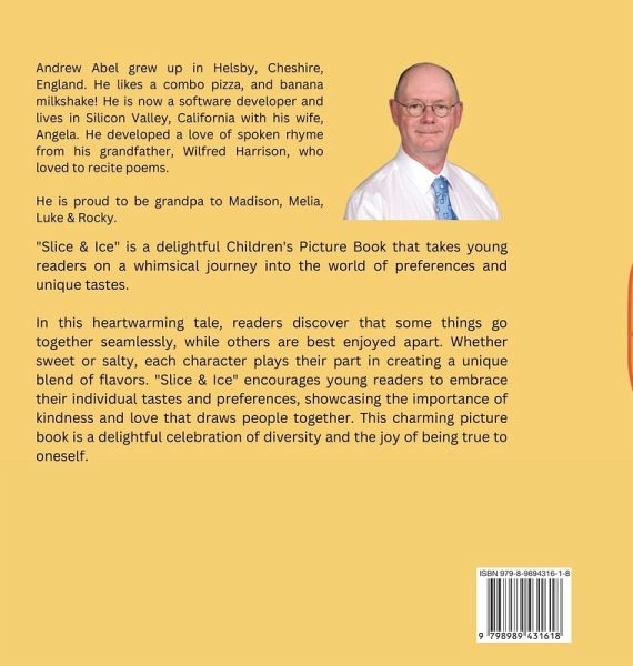 A lighthearted rhyming book about preferences, respect, and a little kindness at the table. Bubba likes pepperoni pizza. Granny prefers veggies. Princess? She's all about rainbow sherbet ice cream-with a unicorn on top. In Slice and Ice, a cheerful cast of characters each places their order-and no two are alike. From gluten-free crusts to banana milkshakes, the story offers a gentle reminder that not everyone likes the same thing, and that's perfectly fine. Told in easy rhymes and filled with playful choices, this book quietly encourages:Respect for others' likes and dislikes Thoughtful conversation around everyday differences A kind attitude-even when someone's order looks a little strange Ideal for teachers, parents, and caregivers who want to reinforce thoughtfulness without turning story time into a lecture. No heavy messages. No debates. Just a simple moment to show that good manners and kindness go a long way. For ages 3-7. Bonus: Includes a fun "menu" activity at the end-perfect for classroom pretend play or dinner table giggles.