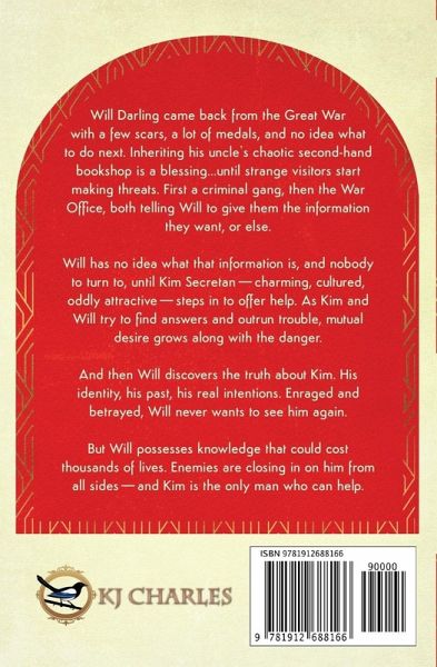 Will Darling came back from the Great War with a few scars, a lot of medals, and no idea what to do next. Inheriting his uncle's chaotic second-hand bookshop is a blessing...until strange visitors start making threats. First a criminal gang, then the War Office, both telling Will to give them the information they want, or else. Will has no idea what that information is, and nobody to turn to, until Kim Secretan-charming, cultured, oddly attractive-steps in to offer help. As Kim and Will try to find answers and outrun trouble, mutual desire grows along with the danger. And then Will discovers the truth about Kim. His identity, his past, his real intentions. Enraged and betrayed, Will never wants to see him again. But Will possesses knowledge that could cost thousands of lives. Enemies are closing in on him from all sides-and Kim is the only man who can help. A 1920s m/m romance trilogy in the spirit of Golden Age pulp fiction.