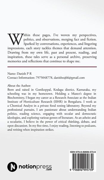 Within these pages, I've woven my perspectives, politics, and observations, merging fact and fiction. Sparked by conversations, experiences, and lingering impressions, each story tackles themes that demand attention. Drawing from my own life, past and present, reading, and inspiration, these tales serve as a personal archive, preserving memories and reflections that continue to shape me.
