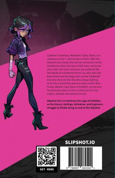 The adventure deepens in Slipshot Vol. 2.0, delivering more of the groundbreaking innovation, vivid worldbuilding, and pulse-pounding action that fans loved in the first volume. Cythiria Crenshaw, once a Mechanic Class Slave, has been stranded on the world of Var 7, also known as Farth. Separated from the Tenddrome since childhood, her past is now a blur-fragmented memories and mysterious scars hint at a life she can't quite piece together. But the two burning marks on her forehead are a constant reminder that she doesn't belong in this world, and a larger destiny awaits. Rive Amber, a ruthless Bestiar Class Slave, has other plans for Cythiria. She believes Cythiria holds the key to transforming Griddish and bringing an end to the Slipshot-once and for all. But this mission comes with a price. Will Cythiria reclaim her past and shape her future, or will her fate be determined by forces beyond her control? As alliances shift and new dangers arise, Slipshot Vol. 2.0 delivers a high-stakes, fast-paced continuation of the sci-fi epic. Dive deeper into the gripping saga where Slaves, Varlings, Vérkatrae, and Engineers wage a battle for the future of their worlds.