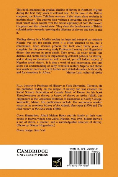 This book examines the decline of slavery in Northern Nigeria during the first forty years of colonial rule. At the time of the British conquest, the Sokoto Caliphate was one of the largest slave societies in modern history. Rather than emancipate slaves, the colonial state abolished the legal status of slavery, encouraging them to buy their freedom. Many were unable to do so, and slavery was not finally abolished until l936. The authors have written a provocative book, raising doubts over the moral legitimacy of both the Sokoto Caliphate and the colonial state.