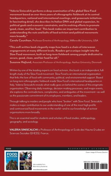 Written by one of the leading experts on food activism, this is the only independent, full-length study of the Slow Food movement. Slow Food is a grassroots organisation that embraces a slow way of life, linking the love of food with community and environmental support. Based on three years of ethnographic fieldwork inside Slow Food's international headquarters in Italy, Valeria Siniscalchi reveals what really goes on behind the scenes of this enigmatic organization. Observing daily meetings, decision-making processes, and major events, she explores the contradictions, complexities, and ambiguities of the movement - as well as the passionate commitment of its employees, members, and leaders. Through talking to insiders and people who have 'broken' with Slow Food, Siniscalchi makes a major contribution to our understanding of one of the most high profile and controversial food movements in the world - and to our knowledge of activist organizations more broadly. This is an essential read for students and scholars in food studies, anthropology, geography, and sociology and anyone interested in Slow Food.