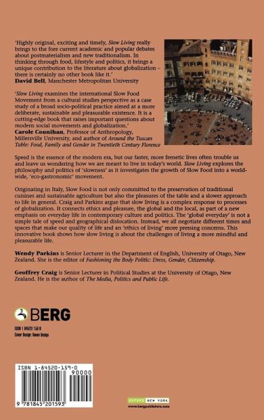 Speed is the essence of the modern era, but our faster, more frenetic lives often trouble us and leave us wondering how we are meant to live in today's world. Slow Living explores the philosophy and politics of 'slowness' as it investigates the growth of Slow Food into a worldwide, 'eco-gastronomic' movement. Originating in Italy, Slow Food is not only committed to the preservation of traditional cuisines and sustainable agriculture but also the pleasures of the table and a slower approach to life in general. Craig and Parkins argue that slow living is a complex response to processes of globalization. It connects ethics and pleasure, the global and the local, as part of a new emphasis on everyday life in contemporary culture and politics. The 'global everyday' is not a simple tale of speed and geographical dislocation. Instead, we all negotiate different times and spaces that make our quality of life and an 'ethics of living' more pressing concerns. This innovative book shows how slow living is about the challenges of living a more mindful and pleasurable life.