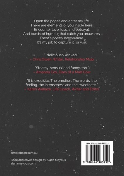 Slow Love and Faded Scars is the debut book from author Anne Robson. This is a lyrical collection of stories and poems of love, longing, memory and hope. Earthy and sensual, yet with unexpected touches of humour, the book explores relationships of all kinds. She touches the anxieties and desires which exist beneath the skin in each of us. From simple reflections to more complex examinations of past and self, the book reveals the poetry in every human emotion. It's raw and it's sweet. It's innocent and it's erotic. It's engaging and it's real. Be ready for the wild tangling of your sensibilities. Anne Robson is an Australian writer and copywriter. With her childhood belief in true magic still intact, her writing incorporates innocence with the elemental. She has an honest and uncomplicated way of recording the complexities of life.