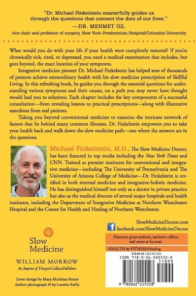 What would you do with your life if your health were completely restored? If you're chronically sick, tired, or depressed, you need a medical examination that includes, but goes beyond, the exact location of your symptoms. Integrative medicine pioneer Dr. Michael Finkelstein has helped tens of thousands of patients achieve extraordinary health with his slow medicine prescription of Skillful Living. In this refreshing book, he guides you through the essential questions for understanding various symptoms and their causes, on a path you may never have thought would lead you to solutions. Each chapter includes the key components of a successful consultation?from revealing lessons to practical prescriptions?along with illustrative anecdotes from real patients. Taking you beyond conventional medicine to examine the intricate network of factors that lie behind many common illnesses, Dr. Finkelstein empowers you to take your health back and walk down the slow medicine path?one where the answers are in the questions.