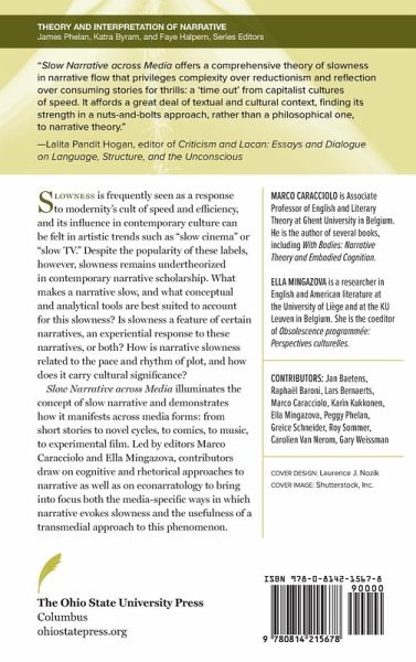 Slowness is frequently seen as a response to modernity's cult of speed and efficiency, and its influence in contemporary culture can be felt in artistic trends such as "slow cinema" or "slow TV." Despite the popularity of these labels, however, slowness remains undertheorized in contemporary narrative scholarship. What makes a narrative slow, and what conceptual and analytical tools are best suited to account for this slowness? Is slowness a feature of certain narratives, an experiential response to these narratives, or both? How is narrative slowness related to the pace and rhythm of plot, and how does it carry cultural significance? Slow Narrative across Media illuminates the concept of slow narrative and demonstrates how it manifests across media forms: from short stories to novel cycles, to comics, to music, to experimental film. Led by editors Marco Caracciolo and Ella Mingazova, contributors draw on cognitive and rhetorical approaches to narrative as well as on econarratology to bring into focus both the media-specific ways in which narrative evokes slowness and the usefulness of a transmedial approach to this phenomenon. Contributors: Jan Baetens, Raphaël Baroni, Lars Bernaerts, Marco Caracciolo, Karin Kukkonen, Ella Mingazova, Peggy Phelan, Greice Schneider, Roy Sommer, Carolien Van Nerom, Gary Weissman