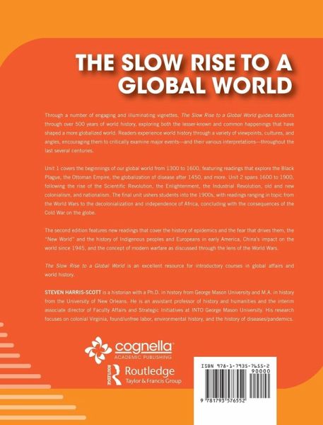 Through a number of engaging and illuminating vignettes, The Slow Rise to a Global World guides students through over 500 years of world history, exploring both the lesser-known and common happenings that have shaped a more globalized world. Readers experience world history through a variety of viewpoints, cultures, and angles, encouraging them to critically examine major events-and their various interpretations-throughout the last several centuries. Unit 1 covers the beginnings of our global world from 1300 to 1600, featuring readings that explore the Black Plague, the Ottoman Empire, the globalization of disease after 1450, and more. Unit 2 spans 1600 to 1900, following the rise of the Scientific Revolution, the Enlightenment, the Industrial Revolution, old and new colonialism, and nationalism. The final unit ushers students into the 1900s, with readings ranging in topic from the World Wars to the decolonialization and independence of Africa, concluding with the consequences of the Cold War on the globe. The second edition features new readings that cover the history of epidemics and the fear that drives them, the "New World" and the history of Indigenous peoples and Europeans in early America, China's impact on the world since 1945, and the concept of modern warfare as discussed through the lens of the World Wars. The Slow Rise to a Global World is an excellent resource for introductory courses in global affairs and world history.
