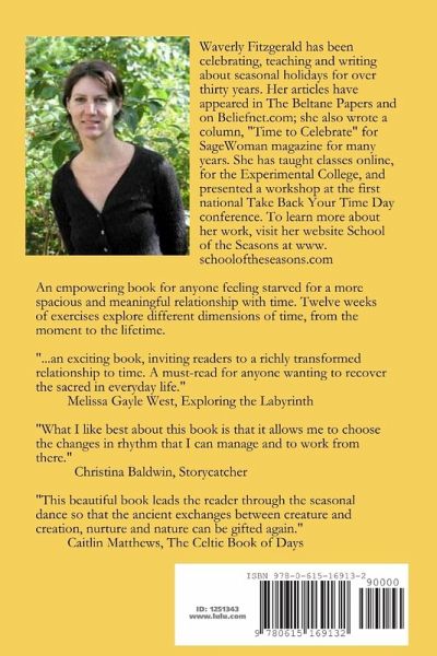 A guide for anyone feeling starved for time. Twelve chapters explore various rhythms of time--moments, hours, days and nights, moons, months, seasons, years and lifetimes--in different cultures and centuries. By doing the related exercises for twelve weeks, you will find your own rhythms and tempo and enjoy a more spacious and meaningful relationship with time.