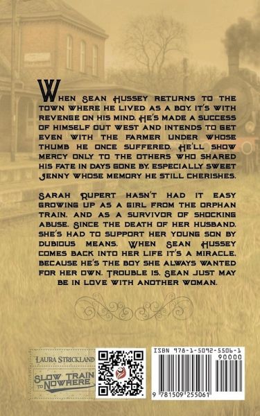 When Sean Hussey returns to the town where he lived as a boy, it's with revenge on his mind. He's made a success of himself out west and intends to get even with the farmer under whose thumb he once suffered. He'll show mercy only to the others who shared his fate in days gone by, especially sweet Jenny whose memory he still cherishes. Sarah Rupert hasn't had it easy growing up as a girl from the orphan train, and as a survivor of shocking abuse. Since the death of her husband, she's had to support her young son by dubious means. When Sean Hussey comes back into her life it's a miracle, because he's the boy she always wanted for her own. Trouble is, Sean just may be in love with another woman.