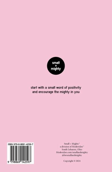 Start with a small word of positivity and encourage the mighty in you. Small + Mighty Journals are created to spark your creativity, spirituality, individuality, strength, courage and more when you start with a small daily thought in your journal. Journaling, notetaking, task-making and more can be easily accomplished when you start with a pen and a page. One positive word each day can move you forward, encourage you to grow, train you to be confident and kind and spread your kindness to the world. That's why 10% of all proceeds from the sales of Small + Mighty Journals goes to support the needs of children. Encourage the mighty in you, to encourage the mighty in others. This blush pink edition features 100 pages with 48 positive words for inspiration plus subtle pink shaded lined writing areas, left pages have cute check boxes for easy to-do list making and a blank area for free notes. 5.25 by 8 inches.
