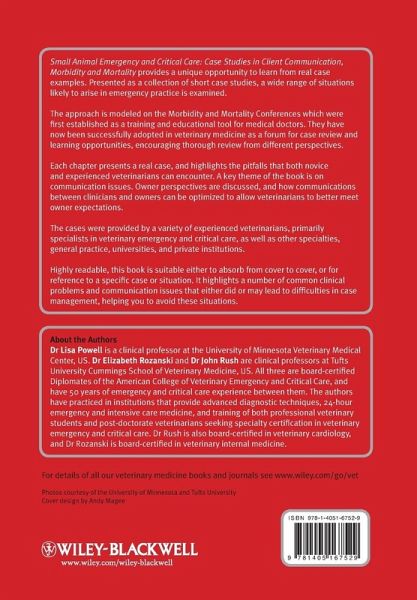 Small Animal Emergency and Critical Care: Case Studies in ClientCommunication, Morbidity and Mortality provides a uniqueopportunity to learn from real-life case examples. Presented as acollection of short case studies, the book examines a wide range ofsituations likely to arise in emergency practice.