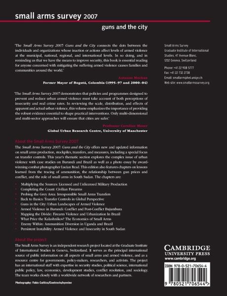 'The Small Arms Survey 2007: Guns and the City connects the dots between the individuals and organizations whose inaction or actions affect levels of armed violence at the municipal, national, regional, and international levels. In so doing, and in reminding us that we have the means to improve security, this book is essential reading for anyone concerned with mitigating the suffering armed violence causes families and communities around the world.' Antanas Mockus, Former Mayor of Bogotá, Colombia (1995-97 and 2000--04)