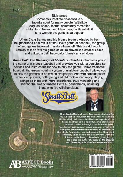 Nicknamed "America's Pastime," baseball is a favorite sport for many people. With little leagues, school teams, community recreation clubs, farm teams, and Major League Baseball, it is no wonder the game is so popular. When Craig Barnes and his friends broke a window in their neighborhood as a result of their lively game of baseball, the group of youngsters invented miniature baseball. This breakthrough version of their favorite game could be played in a smaller space and utilized a ball that wouldn't break any windows! "Small Ball: The Blessings of Miniature Baseball" introduces you to the game of miniature baseball and provides you with a complete set of rules and instructions for how to play the game. Unlike traditional baseball, the unique scoring system of miniature baseball allows you to play the game with as few as two people. And with handicaps for advanced players, both young and old rookies can enjoy playing alongside those with more experience, thus mentoring and sharing the love of baseball with all generations, including those who live with handicaps.