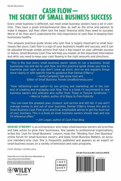 CASH FLOW--THE SECRET OF SMALL BUSINESS SUCCESS Every small business is different, but most small business owners have a lot in common. They have a great entrepreneurial idea, as well as the drive and passion to make it happen, but they often lack the basic financial skills they need to succeed. Worst of all, they don't understand the vital importance of cash flow in keeping theirbusinesses healthy. This uniquely practical guide shows why cash flow is hugely important to small businesses like yours. Cash flow is a sign of your business's health and success; and it can be adjusted through simple actions that have a big impact on your ultimate success or failure. Small Business Cash Flow will help you master all the important information and skills you need to keep your cash flowing in the right amounts and directions. "This is the tool every small business owner needs to run a business. Small businesses live and die by cash flow, and this practical guide shows you how to maximize your cash so you don't come up short. And no one explains things more clearly or with specific how-to guidance than Denise O'Berry." --Anita Campbell, talk show host and Editor of Small Business Trends (smallbiztrends.com) "How refreshing----and useful----to see pricing and marketing set in the context of creating and managing cash flow. This is a book I'll recommend to new business owners and veterans who suffer from 'Feast or Famine Syndrome.' " --Marcia Yudkin, author of 6 Steps to Free Publicity "You can have the greatest plan, product, and service and still fail, if you don't manage money in and out of your business. Denise O'Berry knows this and in Small Business Cash Flow gives practical, employable advice to get the most out of your business. This is a book all small business owners should read and one I'll reference often." --Jim Logan, author of Cash Flow Blog