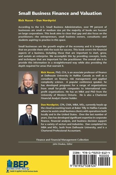 This book covers the financial aspects of a business, including those that are important to start, grow, and sustain an enterprise. According to the U.S. Small Business Administration, over 99 percent of businesses are small or medium size yet the majority of books are focused on large corporations. This book aims to close that gap and also focus on the practitioners-the entrepreneurs, small business owners, consultants-and students aspiring to practice in this space. Small businesses are the growth engine of the economy and it is important that we provide them with the tools for success. This book covers the financial aspects of a business, including those that are important to start, grow, and sustain an enterprise. We accomplish this by providing concepts, tools, and techniques that are important for the practitioner. The overall aim is to provide this information in straightforward way while also providing the depth required for areas that warrant it.
