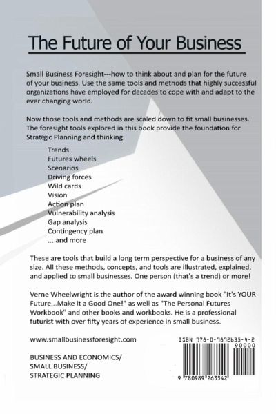 Verne Wheelwright has worked in small business for most of his life. He went back to school and earned a Master's degree in Studies of the Future at the University of Houston (Clear Lake) then, convinced that there was a need, began research in personal futures for his Ph.D. dissertation. This book, Small Business Foresight, along with his book, It's YOUR Future... Make it a Good One! and their workbooks are results of that research. Verne was convinced that the foresight methods that have been so successful for businesses and governments worldwide should work for individuals and small businesses as well. His broad background in small business and international business combined with his travels to much of the world have provided Verne with a strong foundation for his futures research, and added an understanding of cultural and economic differences that affect people's lives and businesses. Verne has tested his work in presentations and workshops with business people of different ages and varied cultural backgrounds, with gratifying results. He continues to receive expressions of gratitude from people who have read his books or articles or visited his web site at www.smallbusinessforesight.com. Verne plans to continue research, speaking and writing about personal and small business futures, and is encouraging futurists around the world to help people change their lives and their businesses with foresight methods Verne is an active (Charter) member of the Association of Professional Futurists, and a Fellow in the World Futures Studies Federation.